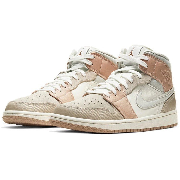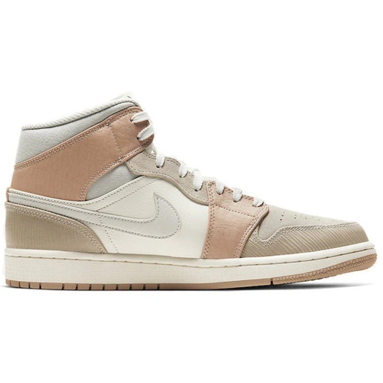 Air Jordan 1 Mid ‘Milan’ CV3044-100 features. this trendy/street style design is perfect for lifestyle occasions. Presented in a sail/light bone-string-shimmer voile colorway.