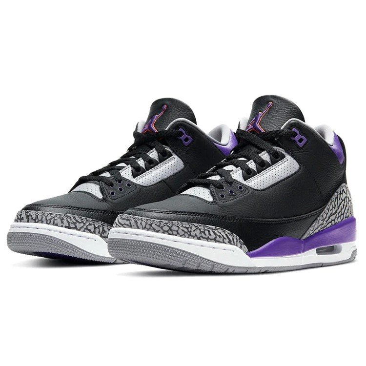 Air Jordan 3 Retro ‘Court Purple’ CT8532-050 features. this sports/trendy design is perfect for lifestyle occasions. Key features include cushioning/slip-resistant/wearable. Presented in a black/cement grey/white/court purple colorway.