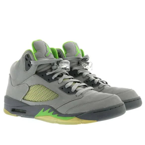 Air Jordan 5 Retro ‘Green Bean’ 2006 136027-031 features. this sports design is perfect for lifestyle occasions. Key features include slip-resistant/lightweight. Presented in a silver/green bean/flint grey colorway.
