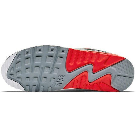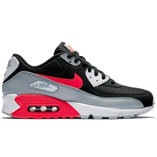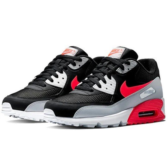Nike Air Max 90 Essential ‘Bright Crimson Black’ AJ1285-012 features. this sports design is perfect for lifestyle occasions. Key features include cushioning/slip-resistant. Presented in a wolf grey/bright crimson-black-white colorway.