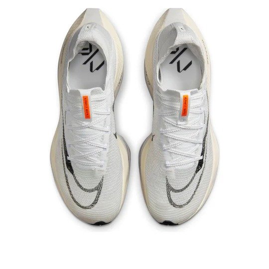 Nike Air Zoom Alphafly NEXT% 2 ‘Prototype’ DJ6206-100 features. this sports design is perfect for running occasions. Presented in a white/black colorway.
