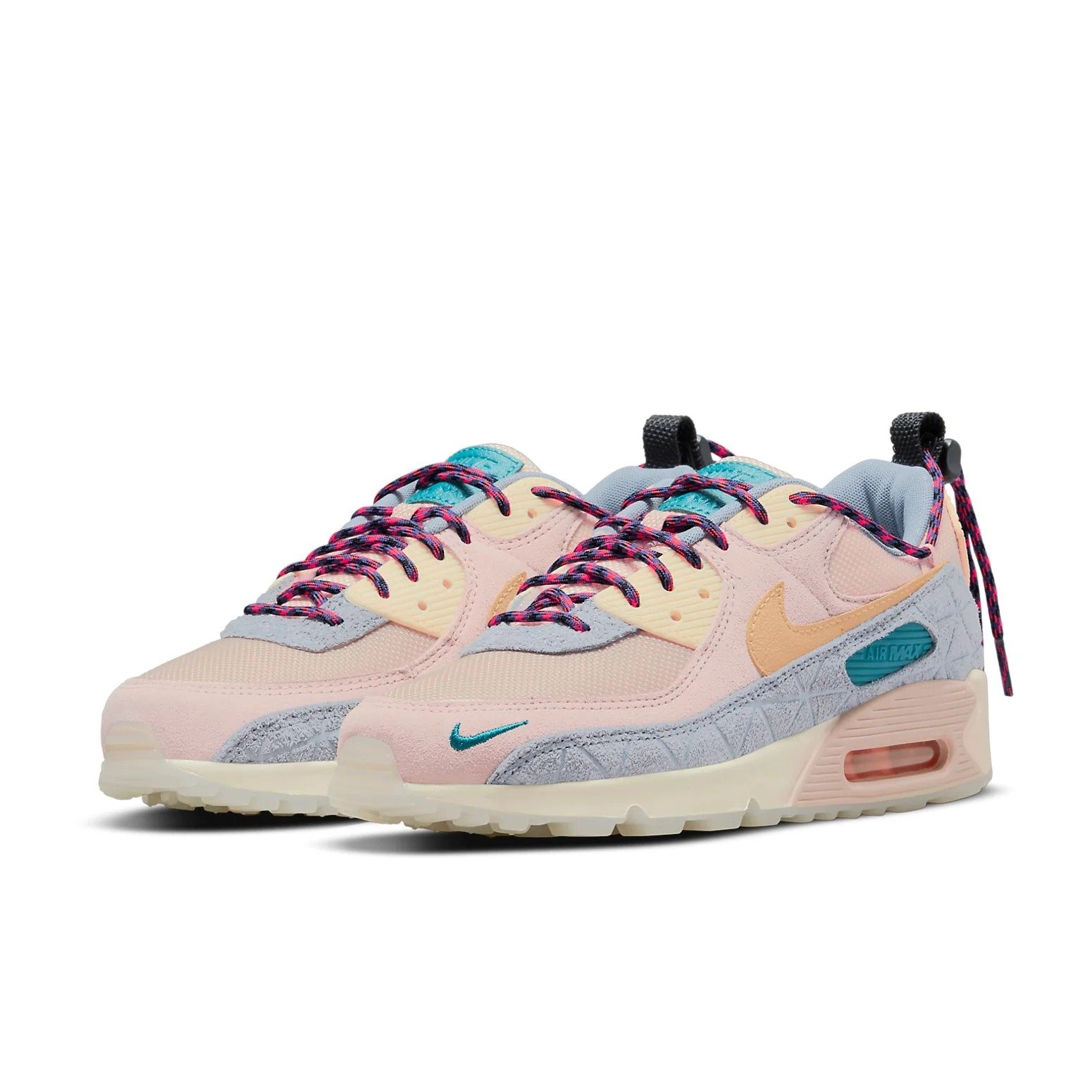 (WMNS) Nike Air Max 90 SE ‘Fossil Stone Ashen Slate’ DM6438-292 features. this sports design is perfect for lifestyle occasions. Key features include cushioning/slip-resistant/wearable/wrapping. Presented in a pink/blue/purple colorway.