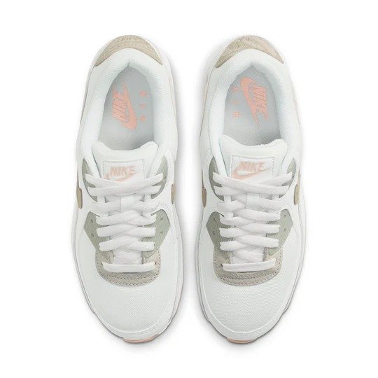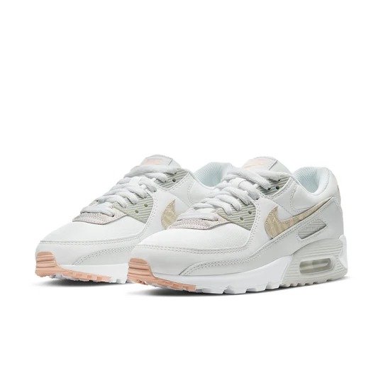 (WMNS) Nike Air Max 90 SE ‘Summit White Light Bone’ CV8824-100 features. this sports/retro/trendy design is perfect for lifestyle occasions. Key features include cushioning/slip-resistant/wearable/wrapping/supportive. Presented in a gray/white/pink colorway.